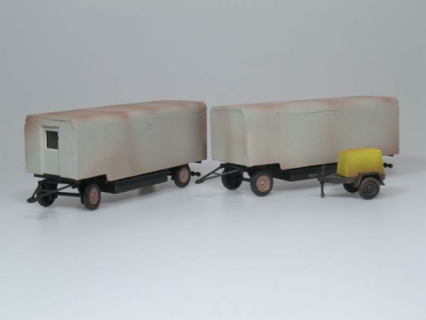 Kompletní plastiková stavebnice stavebních maringotek s přívěsem. Obsahuje probarvené plastikové výlisky na sestavení modelů.